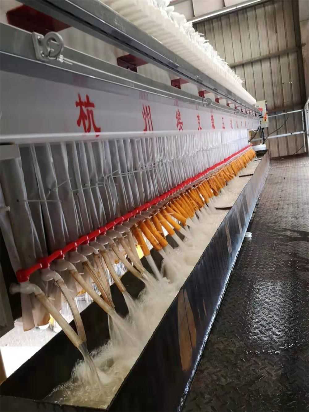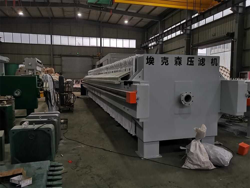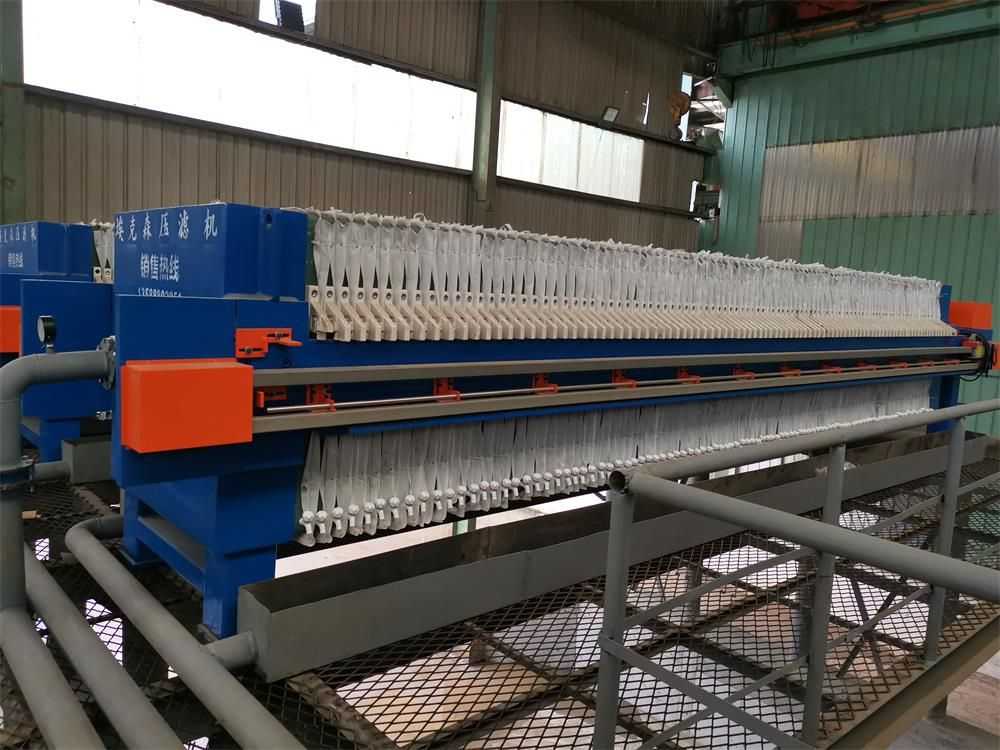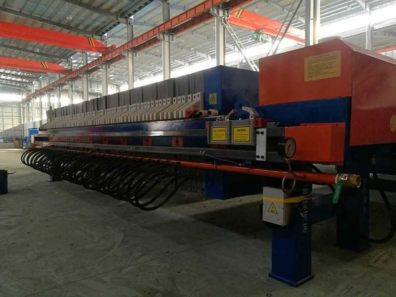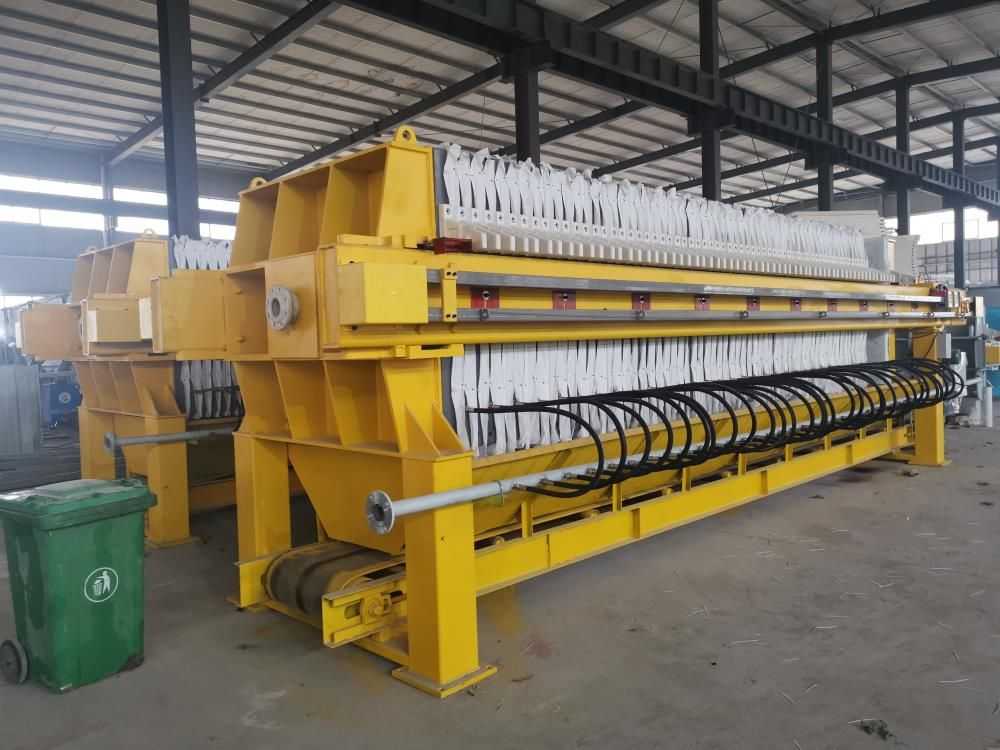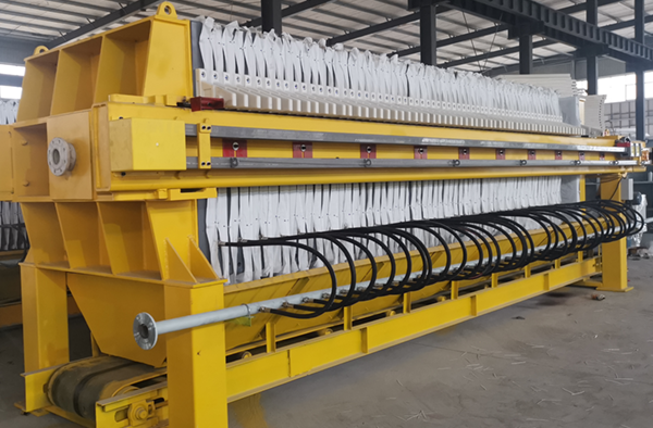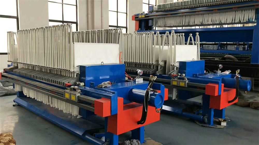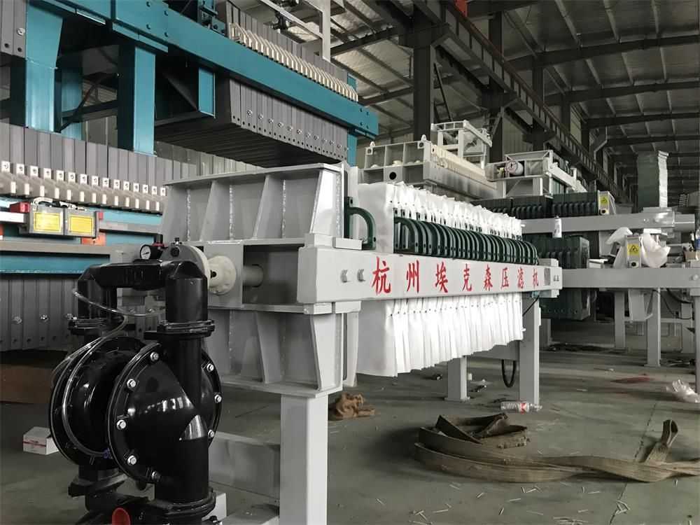 隔膜壓濾機(jī)和常規(guī)箱式壓濾機(jī)的主要區(qū)別在于,在濾板的兩側(cè)都增加了兩個彈性膜(復(fù)合橡膠膜是一個整體式膜。在操作期間,當(dāng)進(jìn)料完成時,將高壓流體介質(zhì)注入膜中,并使整個膜膨脹以過濾濾餅,以進(jìn)一步使濾餅脫水,這是壓力過濾。在隔膜壓濾機(jī)運(yùn)行期間,液壓系統(tǒng)使用液壓油作為壓力載體來傳遞內(nèi)部壓力。